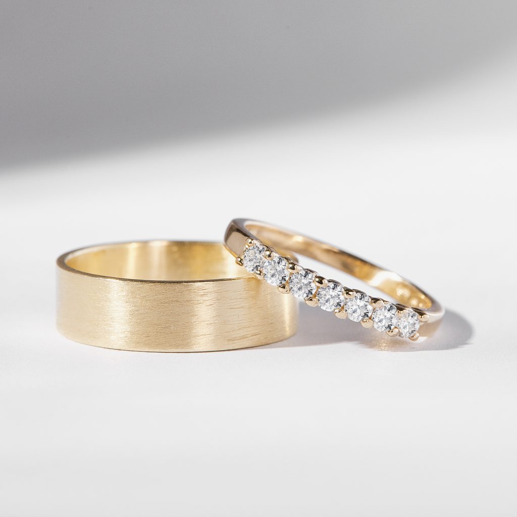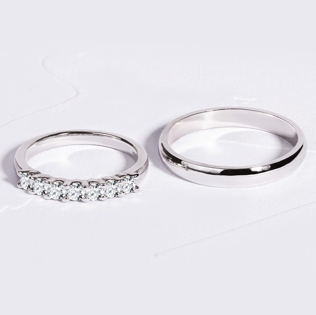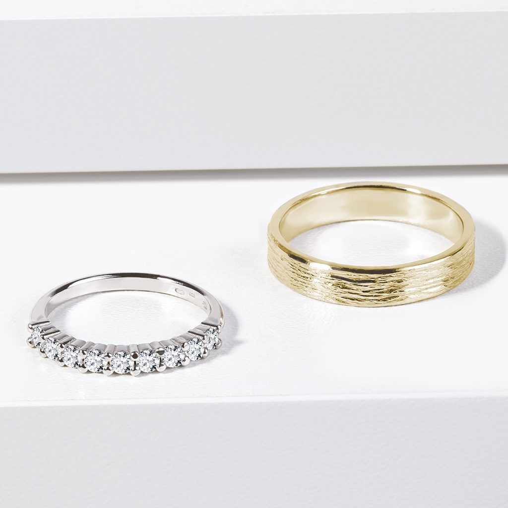 The wedding is getting closer, you’re starting to shop for your wedding bands, but maybe you’re not sure what style you’re looking for… Get inspired by our photos of original KLENOTA wedding rings. Here you’ll find the most popular rings and wedding sets in white, yellow, and rose gold and even multicolored combinations. Men's rings are all about comfort and durability, while our women's rings are more luxurious and often sparkle with diamonds.