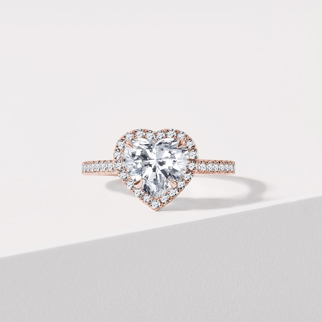 This stunning 14k rose gold ring is a romantic showstopper, featuring a 1.5 carat lab grown heart diamond in the center. A fine channel setting of clear diamonds around the central stone and the band emphasizes its exceptional clarity and gives the whole ring an unmissable sparkle. A perfect engagement ring or gift for a significant anniversary.