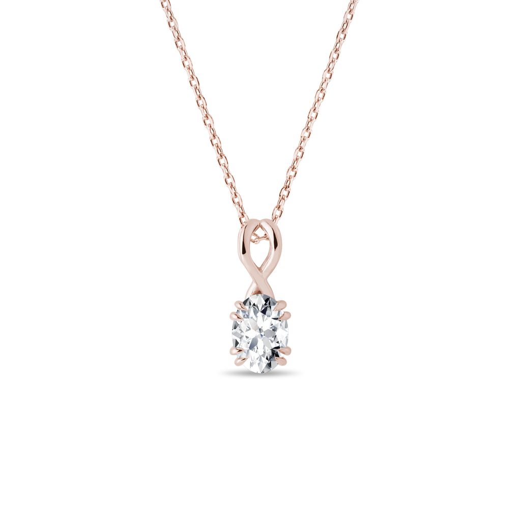 A luxurious 14k rose gold necklace decorated with a natural oval diamond weighing 0.4 ct. The elegant diamond pendant is suspended from a rolo chain, whose understated design harmoniously complements the overall look of the necklace, highlighting its timeless style. The lovely way the diamond has been set as well as the added detail of an extra small round diamond makes the sparkle of the stone stand out beautifully, dazzling everyone whenever you wear it.
