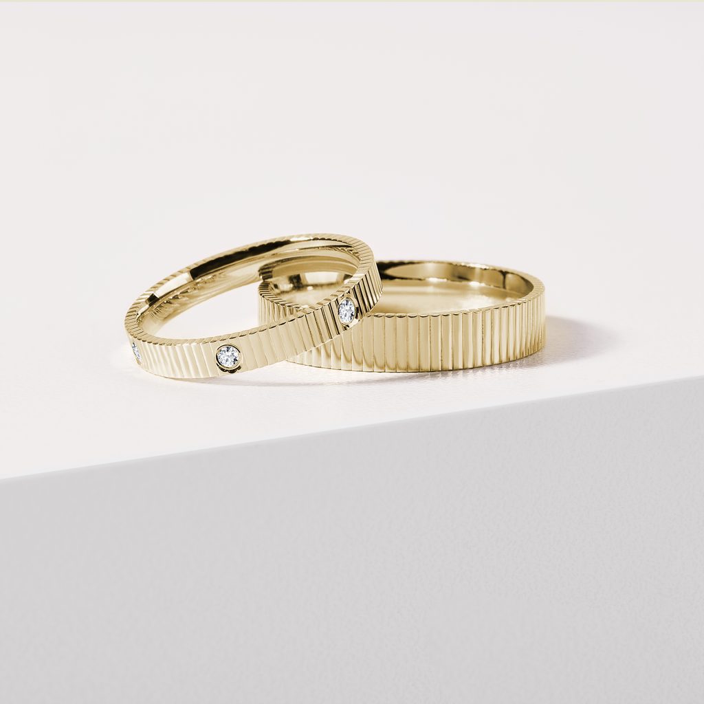 Women's Yellow Gold Fluted Wedding Band with 6 Diamonds
