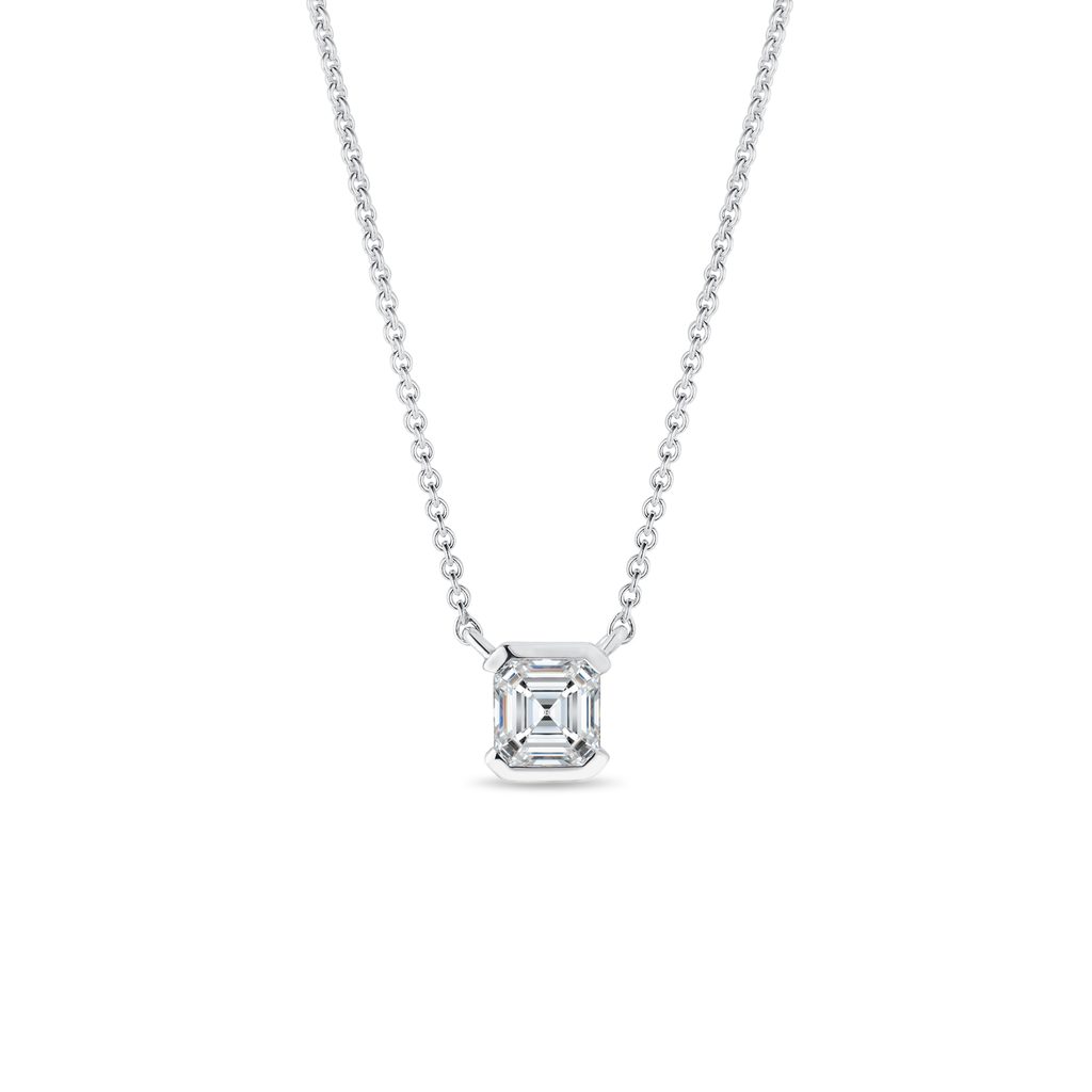 Asscher Diamond Necklace in White Gold