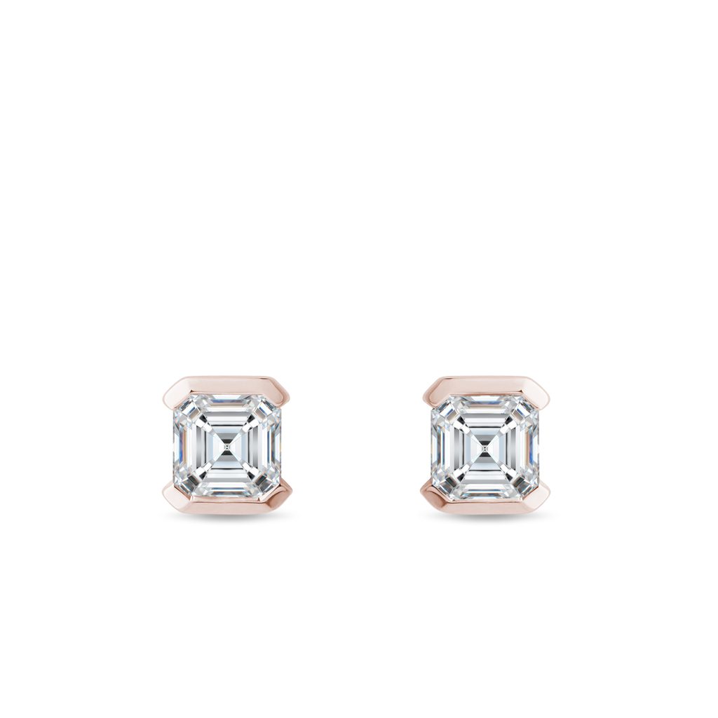 Asscher Diamond Studs in 14k Rose Gold
