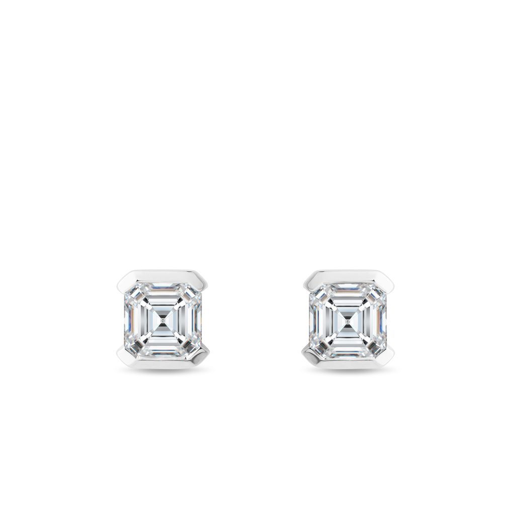 Asscher Diamond Studs in 14k White Gold