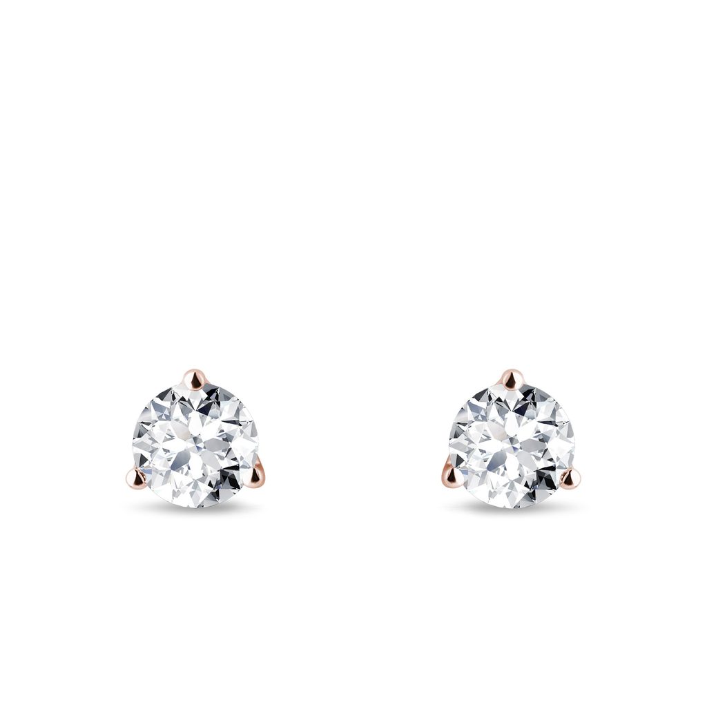 Stunning diamond stud earrings made of 14k rose gold. The diamond setting has three fine prongs, giving these classic studs a gentle and elegant style. On each earring, you’ll see a glittering 4.5 mm in diameter diamond in a brilliant cut. Their size gives them a beautiful luster. A great gift idea for lovers of minimalist jewelry, but do not want to compromise on the quality.