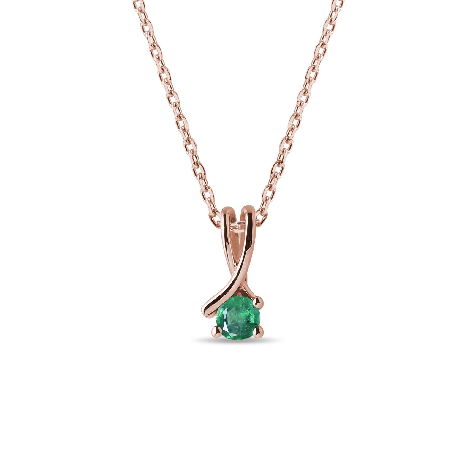 A 14k rose gold chain in a minimal design in the form of a thin gold ribbon with a round green diamond shining in the middle. This clean, elegant design enhances the natural beauty of the stone, creating a timeless accessory that's perfect for ladies who love simple designs with a distinctive touch.