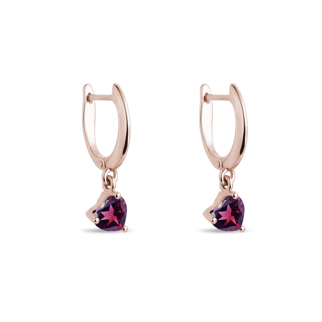 Heart Earrings with Rhodolites in Rose Gold