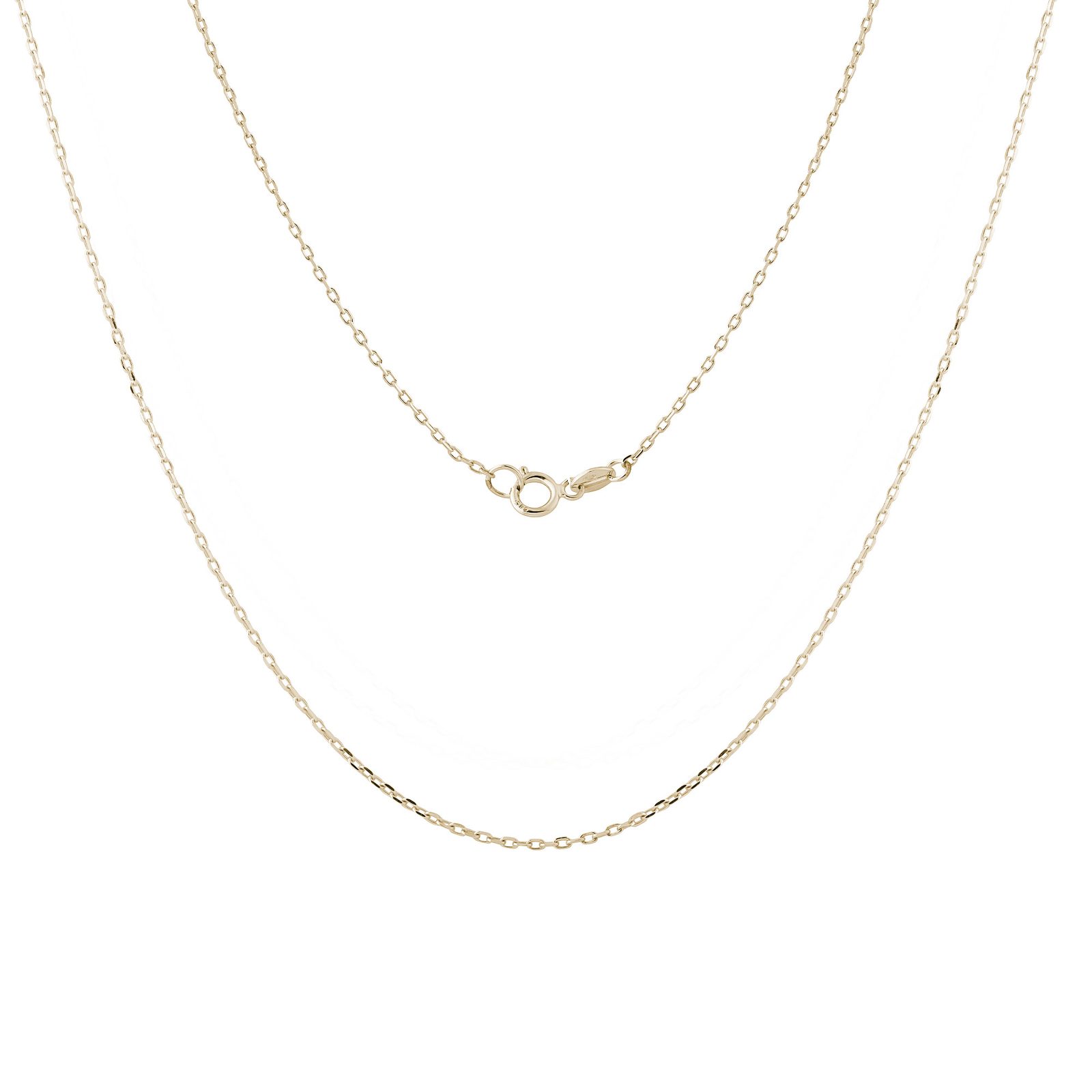 This 14k yellow gold anchor chain with flat, polished links beautifully reflect light and shines softly. Anchor chains are one of the strongest types of chains and rarely break and if they do, they are easy to repair. This chain will beautifully accentuate the beauty of small pendants without overshadowing them. The extended length of 50 cm guarantees that it is comfortable to wear and pairs well with other jewelry.