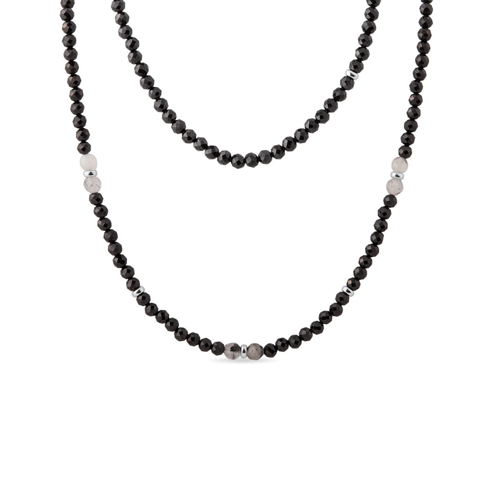 This original natural mineral necklace is made of black faceted spinels complemented by natural crystals and small 14k white gold beads. When combined together, these create a timeless color combination that looks very elegant and modern. This necklace will stand out on special occasions but its understated design means that it can also serve as a piece of jewelry meant for everyday wear.