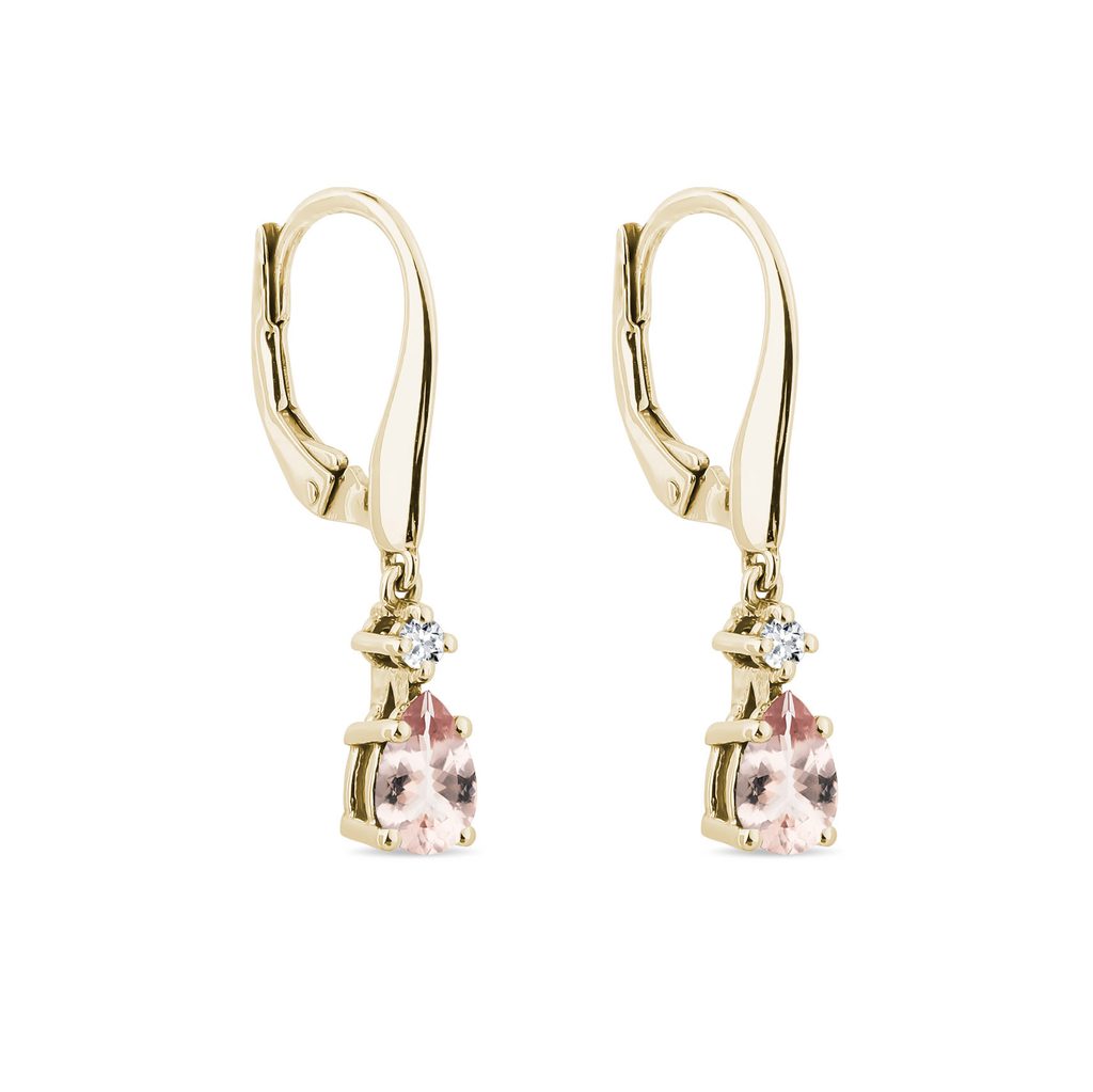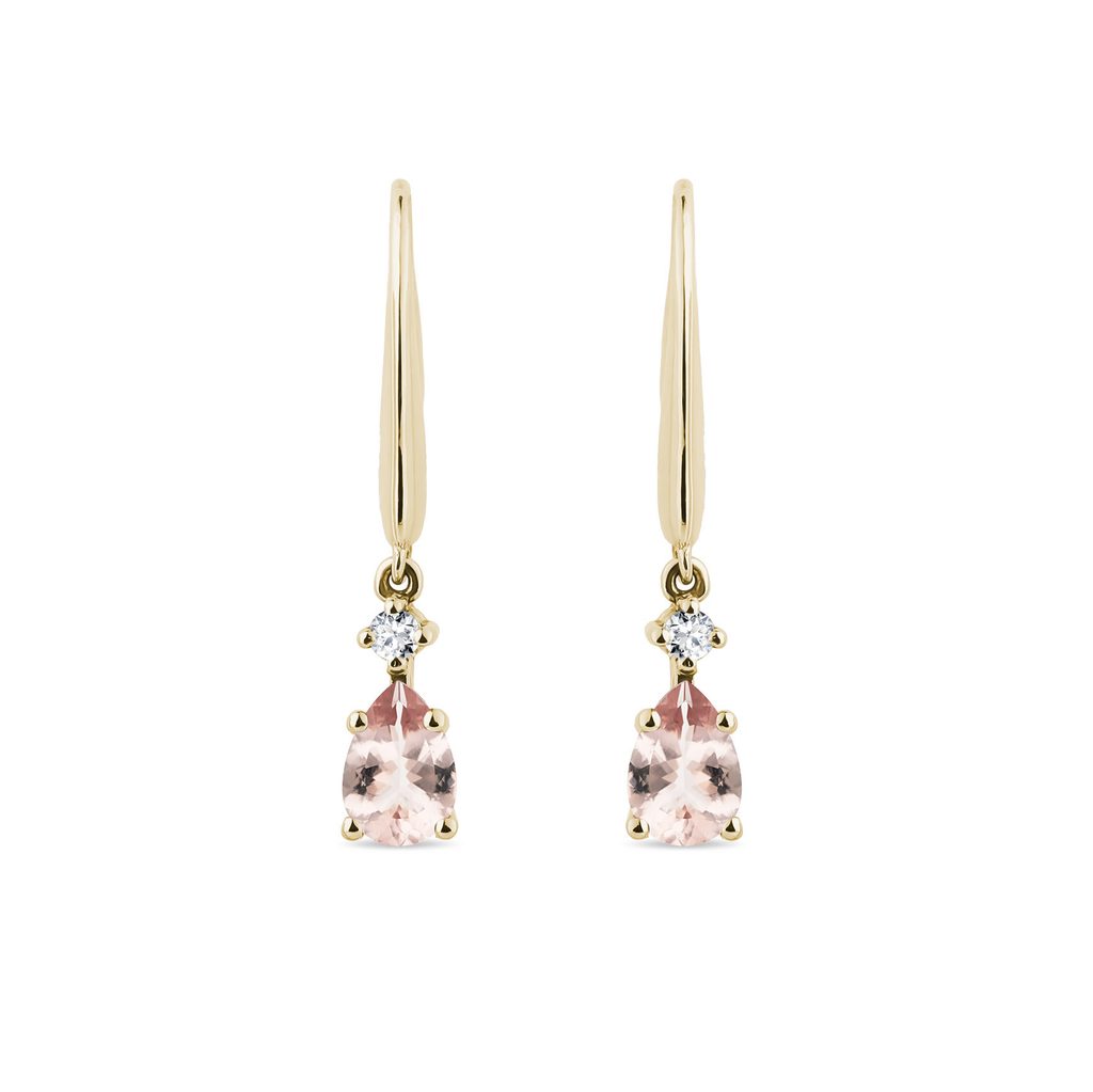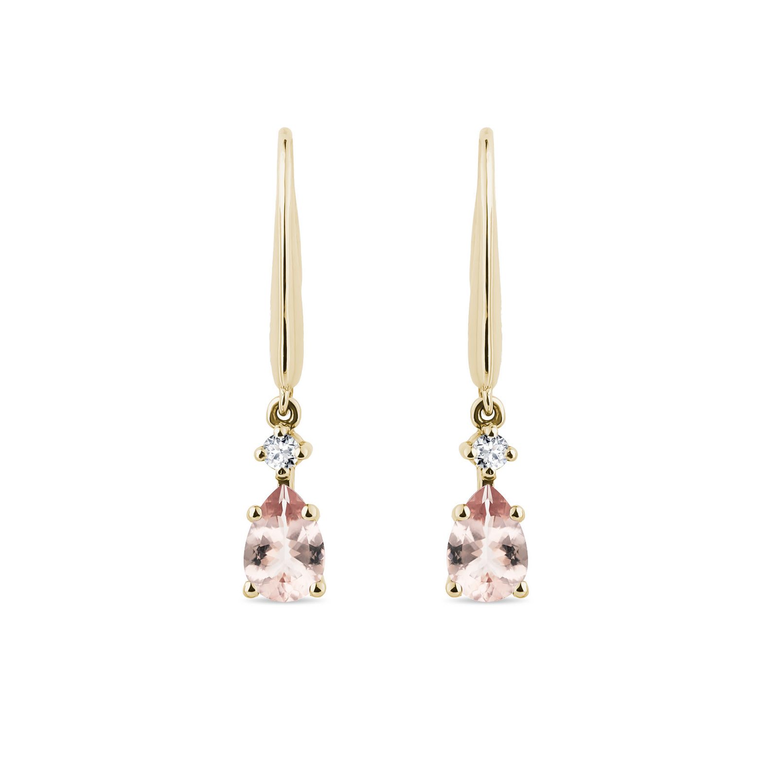 These elegant drop earrings are decorated with beautiful morganites. The soft pink color of the stones harmoniously matches the warmth of the 14k gold and the soft sparkle of the clear diamonds. The overall look is balanced, luxurious and also very feminine. Perfect for everyday wear as well as for special moments when you really want to shine.