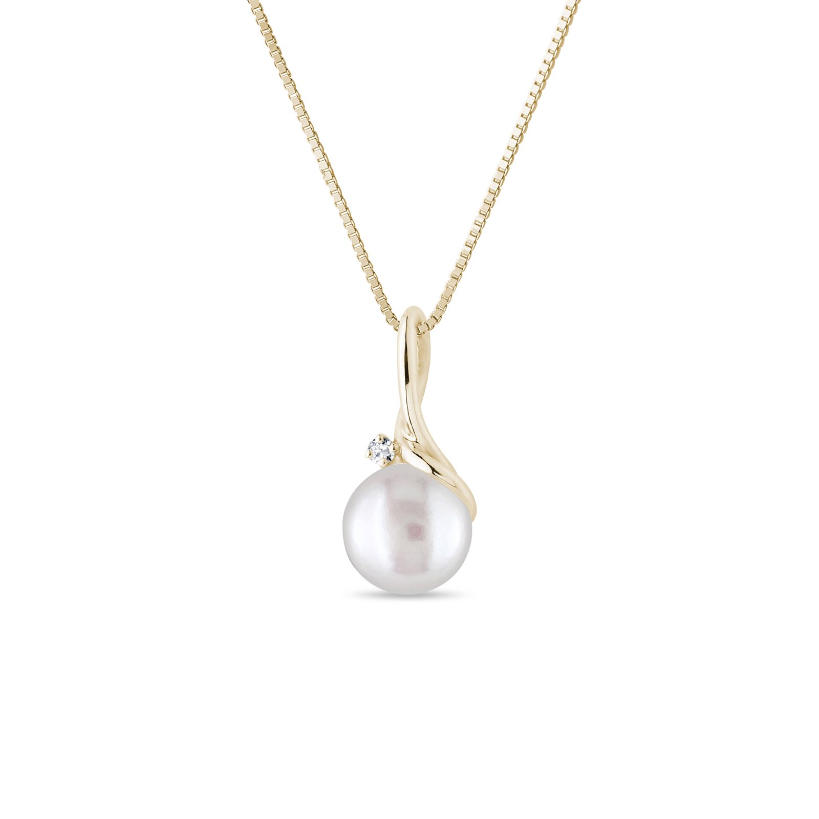 This necklace features a dainty yellow gold Venetian chain that's decorated with a white freshwater pearl and further complemented by a small diamond. The necklace can be worn alone or paired with other jewelry. Its simple and timeless design also makes it a lovely gift for a birthday, graduation or other special occasion.