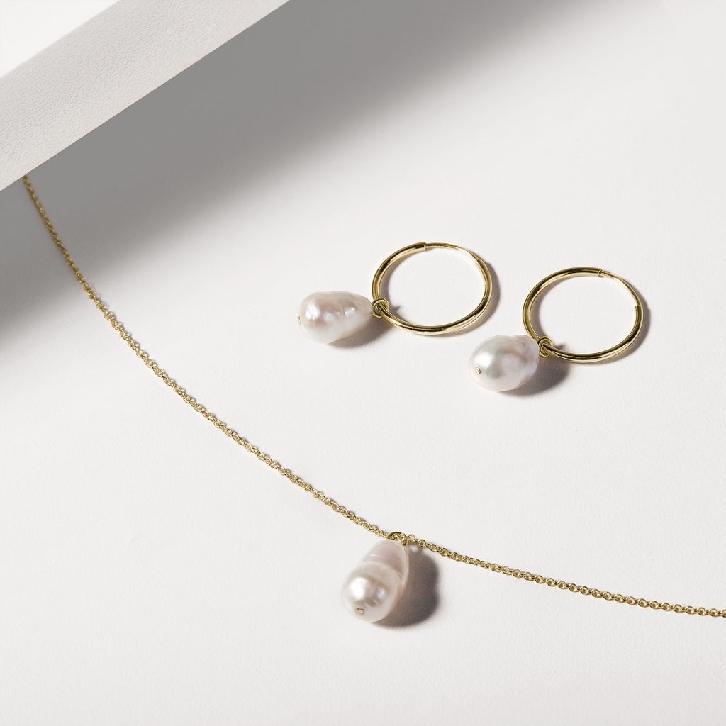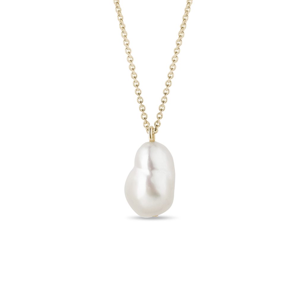 This original 14k yellow gold necklace is decorated with a baroque freshwater pearl. Each of the baroque pearls has a unique, irregular shape which is characteristic of this type of pearl and which stands out best when featured in a simple design.