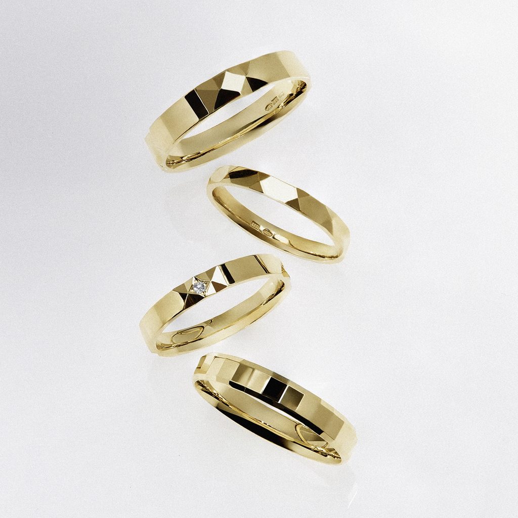 This 4mm wide 14k yellow gold men's ring features a precision cut fluted surface that creates a slight geometric effect. The glossy finish accentuates the ring’s excellent craftsmanship and gives it a clean and modern character. The balanced proportions and well-thought-out profile ensure comfortable wear while the timeless design will appeal to men who like a simple style with understated details.