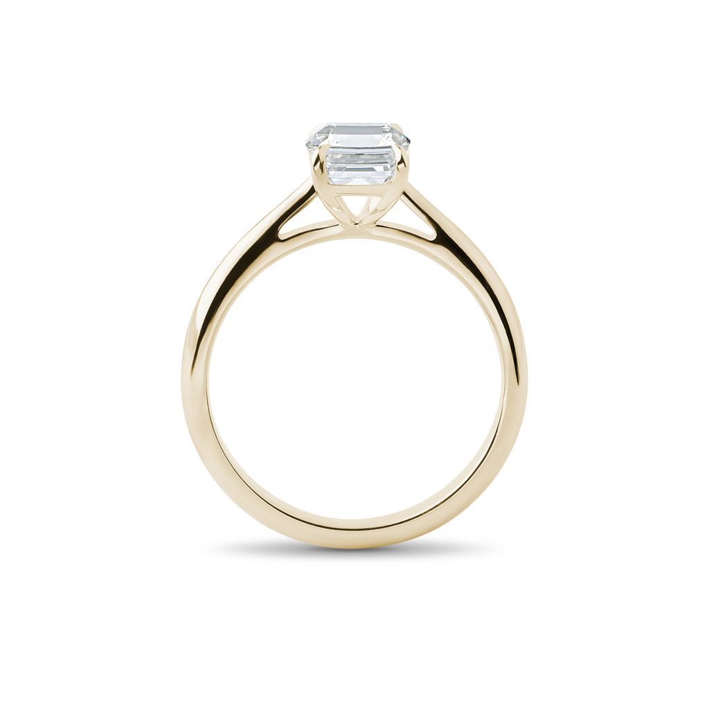 This exquisite 14k yellow gold solitaire engagement ring is immediately striking for its lab grown diamond in a unique radiant cut. The size of the imposing 1.4 carat stone allows it to stand out beautifully, reflecting light to the fullest. This ring would make an excellent engagement ring but it would also delight as a wonderful gift on important birthdays or other life milestones.