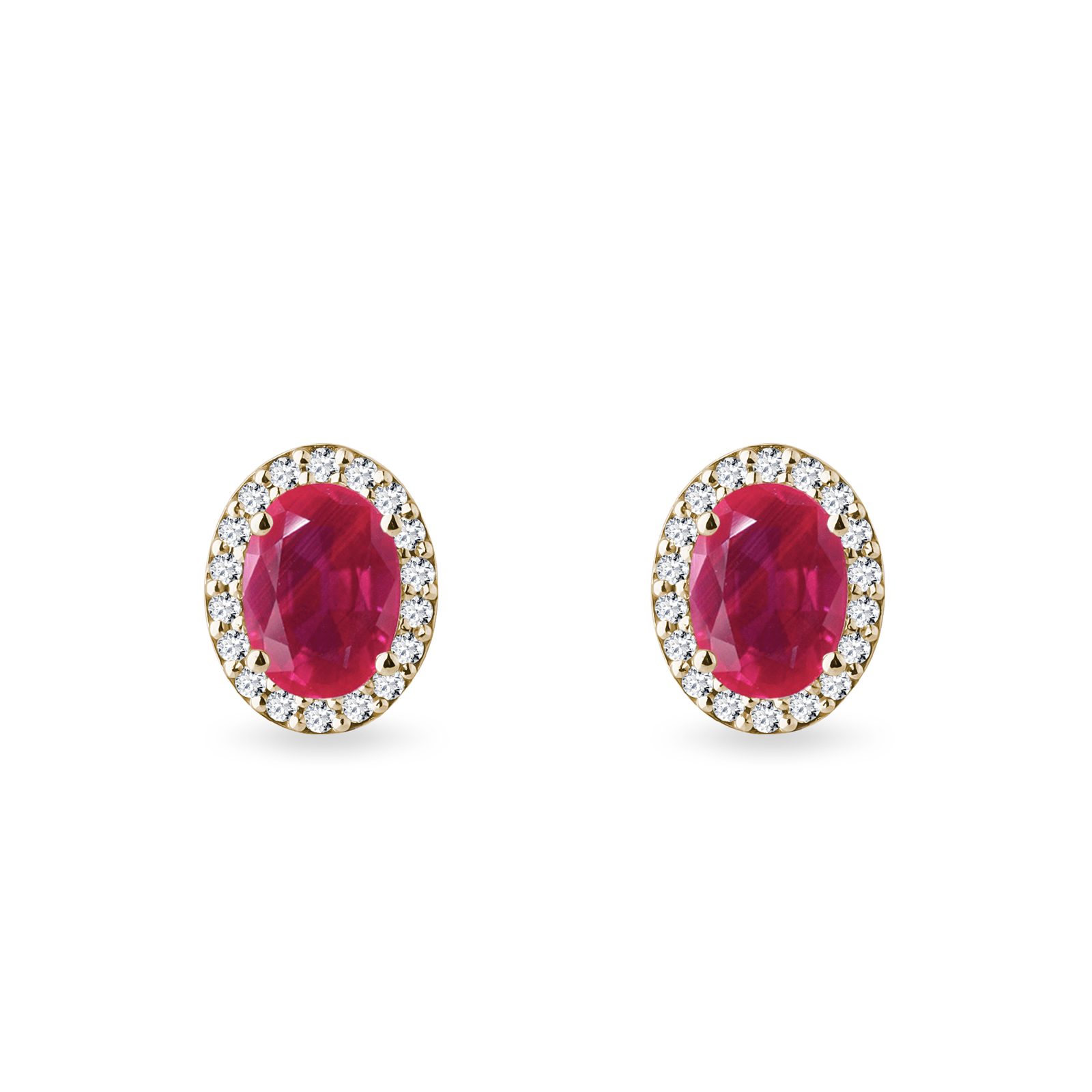 Oval Ruby and Diamond Halo Earrings in Yellow Gold