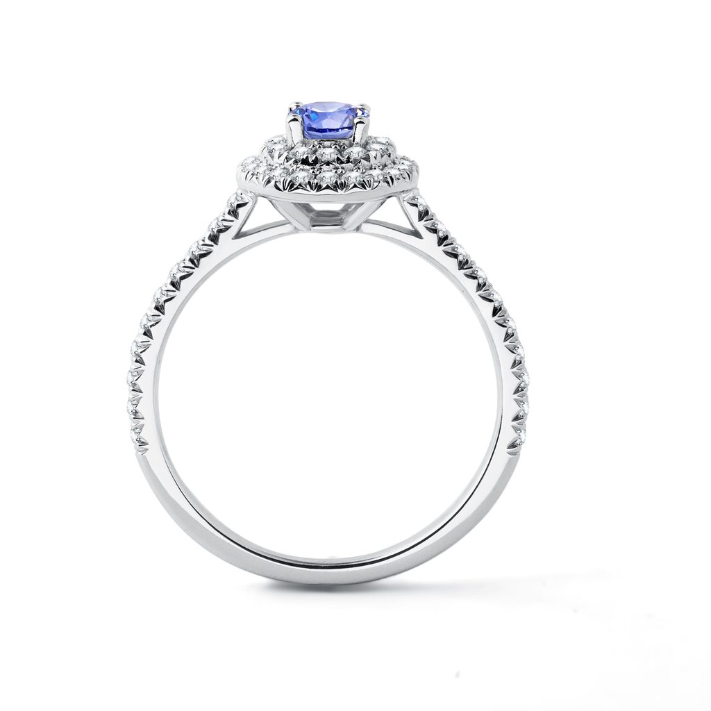 Tanzanite and Diamond Halo Ring in White Gold