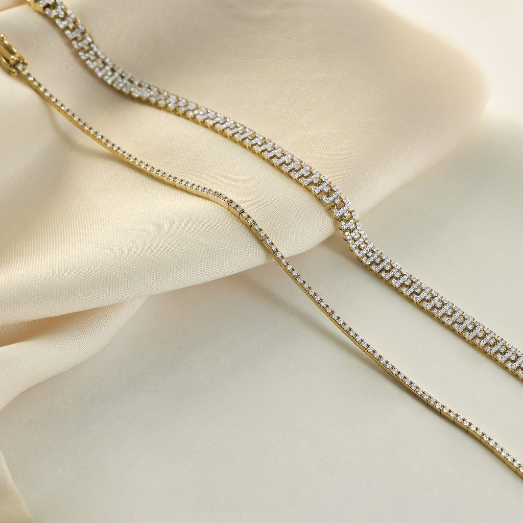 Tenisový náramek ze žlutého 14k zlata s diamanty