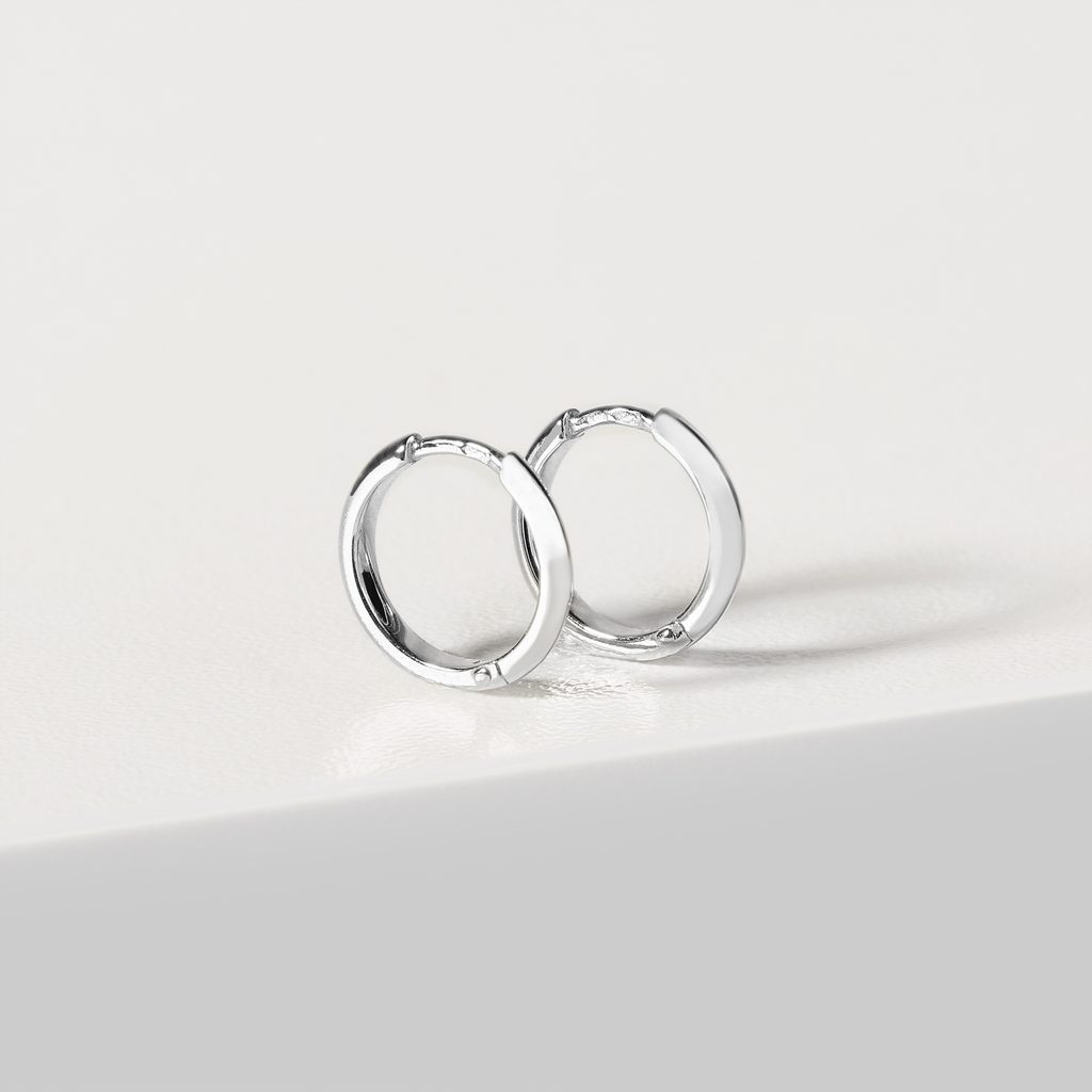 Classic hoop earrings made of 14k white gold with a diameter of 12 mm in a simple and elegant design. Their timeless appearance makes them suitable for everyday wear and as a universal gift that women of all ages will appreciate.